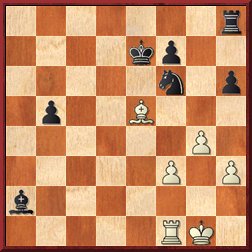 Но сначала он зачем-то отдал пешку b5 (вместо 32... Rc8 ? можно было просто сыграть 32...Bc4 , а на 33.Re1 – Ra8). Затем он позволил белым отдать слона за оставшиеся две пешки, видимо, не заметив, что потом одна фигура отыгрывается. Получилась ничья, заметно повлиявшая на психологическое самочувствие нашего известного шахматиста. |
