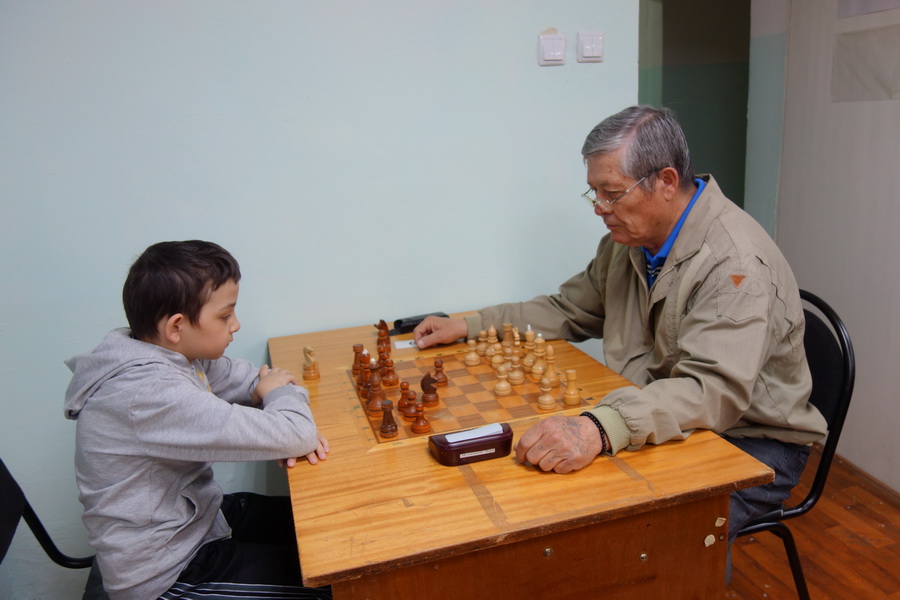 По инициативе председателя шахматной федерации Мелекесского района, главного судьи соревнований Павла Петровича Кокшина на турнир были приглашены шахматисты из района. С одним из них, Иваном Петровичем Стеньгиным, мы знакомы очень давно - он многократный участник наших городских соревнований, призер турниров среди ветеранов.